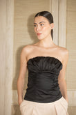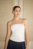 Este top drapeado de algodón y elastano sin tirantes viene con un panel curvo fruncido, cremallera trasera expuesta y elástico para un ajuste perfecto. Con un 96% de algodón, este top es cómodo y resistente, mientras que el 4% de elastano permite un movimiento sin restricciones. ¡La combinación perfecta de estilo y comodidad!